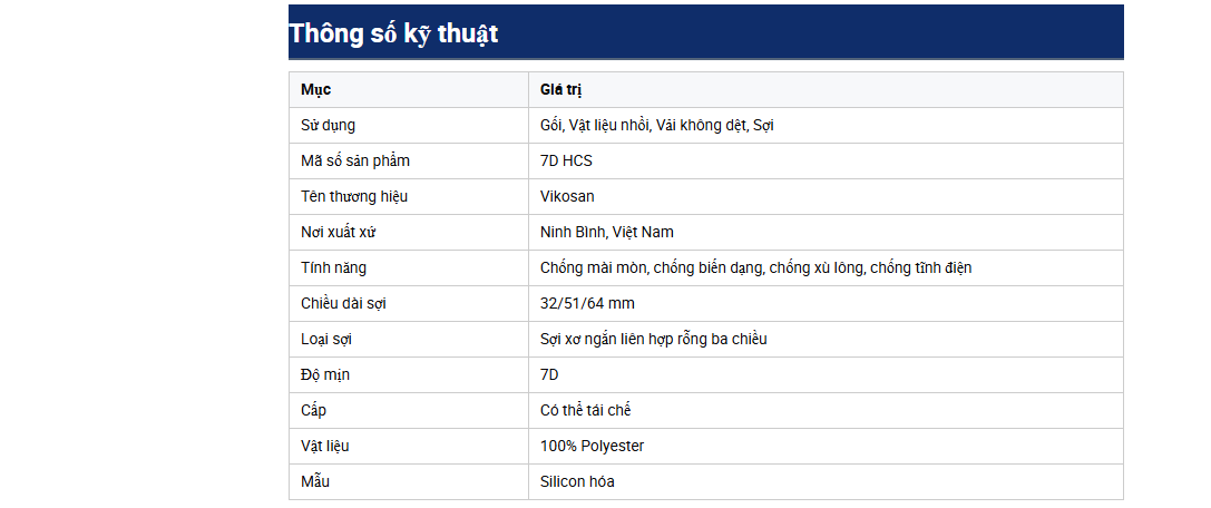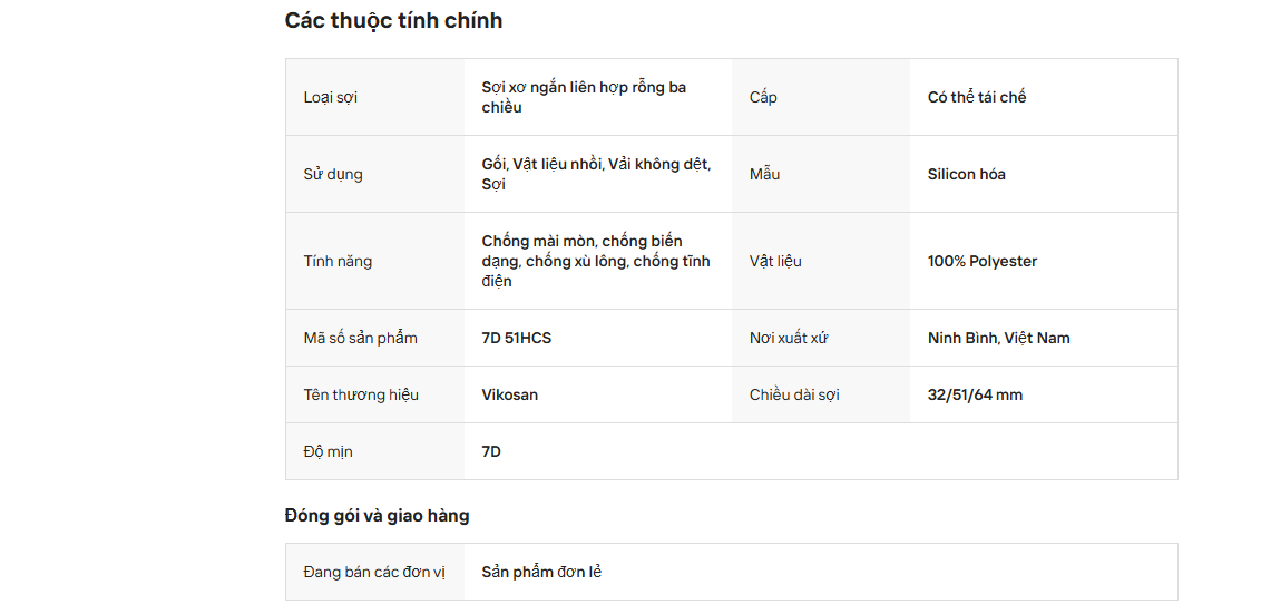 Sợi polyester tái chế rỗng liên hợp silicon hóa HCS 7D 51mm