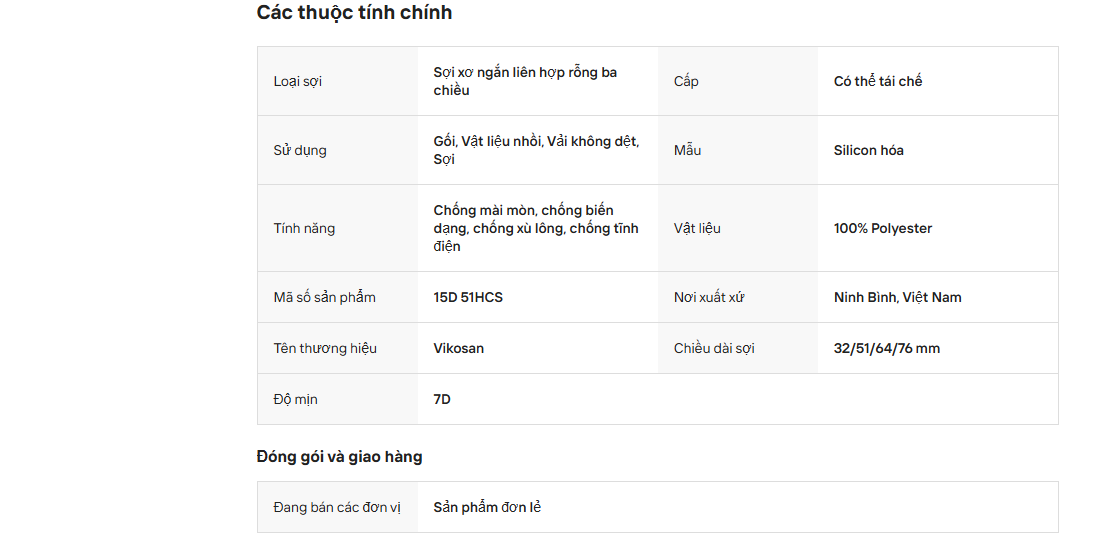 Sợi xơ ngắn polyester 15D 51mm HCS